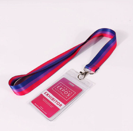Este cordón para acreditación es ideal para ferias, congresos, eventos empresariales y exposiciones. Está fabricado en cinta satinada de alta calidad con un atractivo diseño tricolor en tonos rojo, fucsia y azul, que le aporta un estilo moderno y profesional. Cuenta con un resistente gancho metálico giratorio que permite sujetar tarjetas identificativas, llaves o pases de acceso de forma segura. Incluye un porta credenciales de PVC transparente, reutilizable y duradero, perfecto para exhibir nombres, cargos o códigos QR. Cómodo de llevar al cuello y muy visible, este lanyard es una opción funcional y elegante para expositores y organizadores.