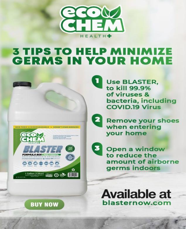 Mantén tu hogar y espacio de trabajo libre de virus y bacterias con Blaster de eco CHEM HEALTH+, un desinfectante avanzado y 100% natural, formulado para ofrecer una limpieza profunda sin comprometer la salud ni el medio ambiente.